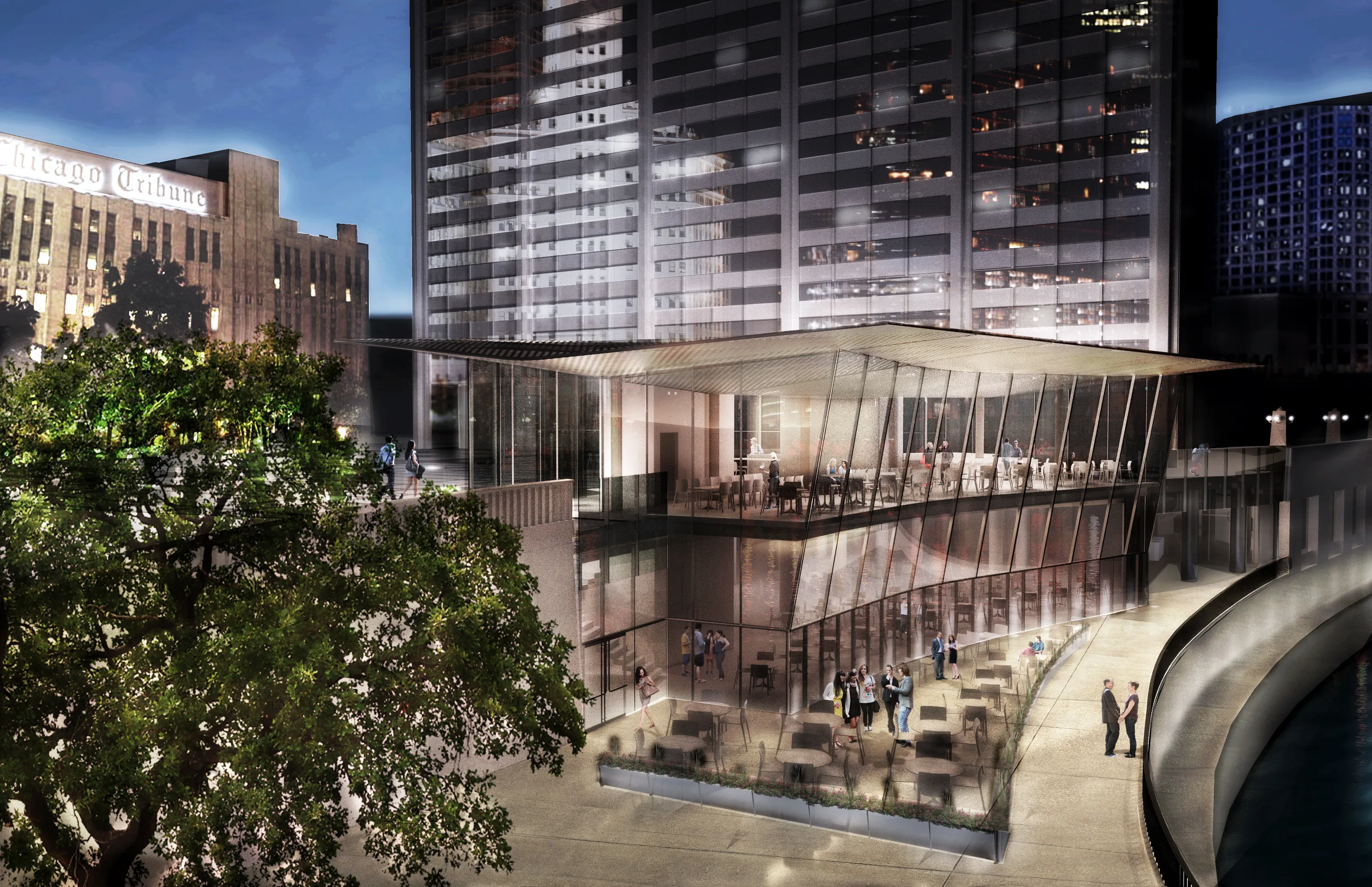 Centered on the ideals of transparency and harmony with the site, our competition-winning design engaged the river and created complete flexibility, allowing for a wide range of tenant types. The site later became the location for the Apple Store on Michigan Avenue.